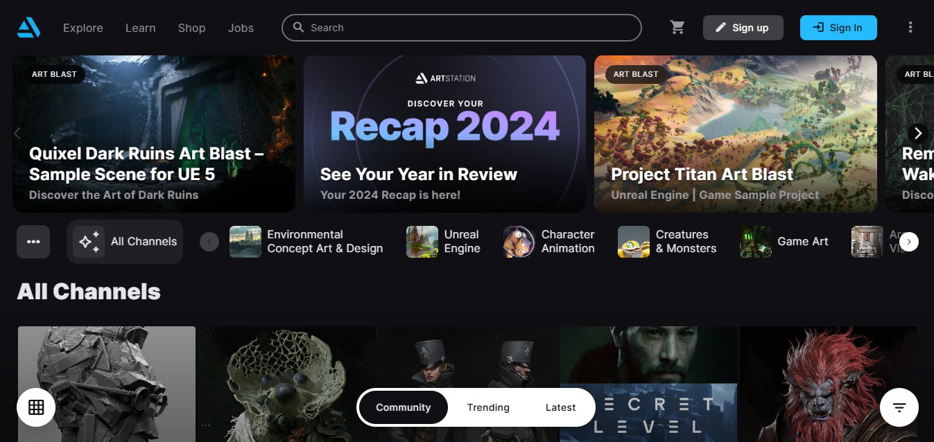 ArtStation is a platform primarily for game, film, media, and entertainment artists to showcase their portfolios and sell prints or digital downloads.