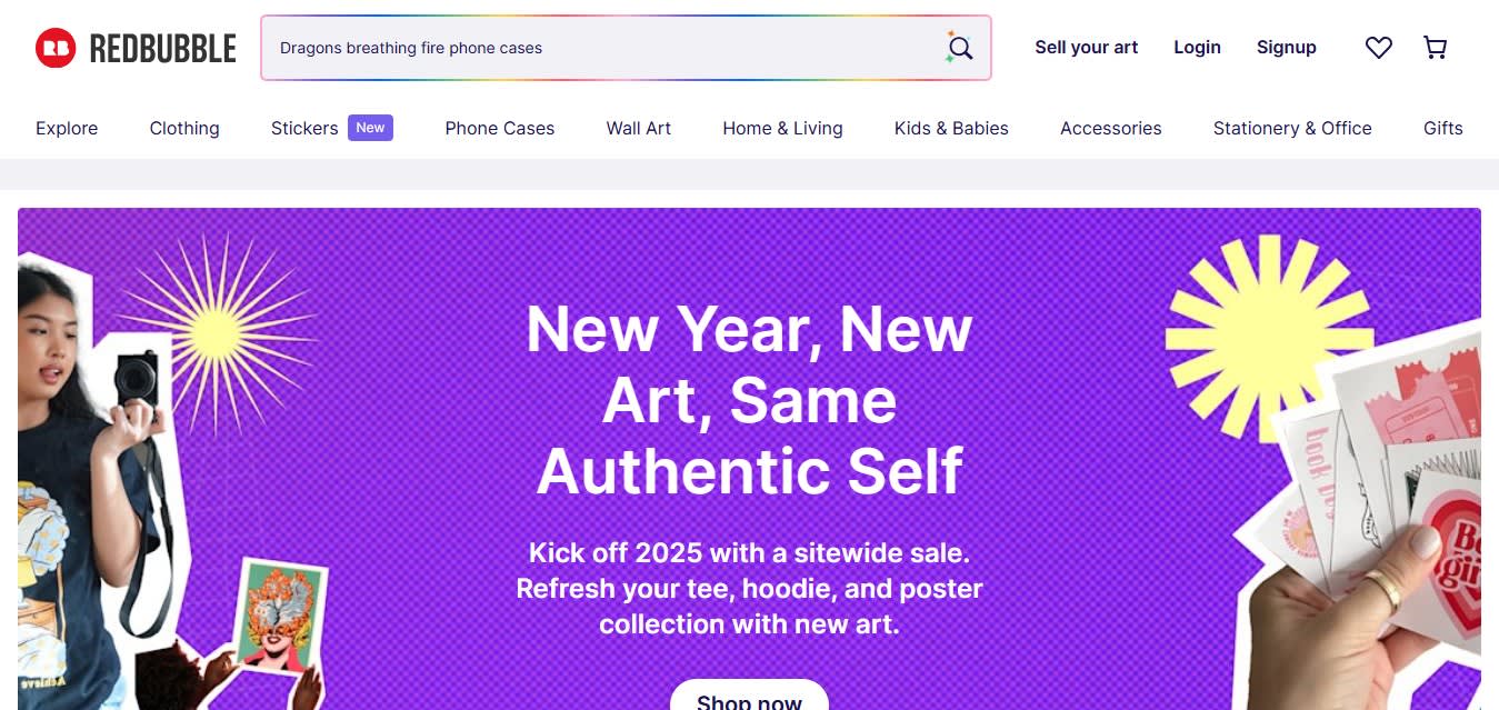 Redbubble allows artists to upload their designs and sell them on various products like t-shirts, stickers, and home decor.
