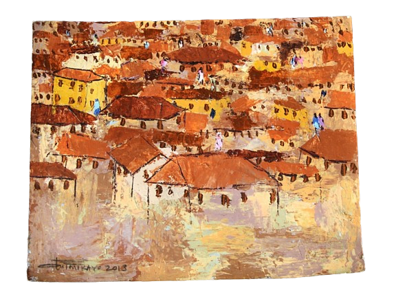 “African Colonial Dwellings” is a captivating oil painting by renowned artist Olufemi Kayo that delves into the complex and often contentious legacy of colonialism in Africa. Measuring 26cm x 32cm, this striking piece offers a thought-provoking visual commentary on the impact of colonial rule on African societies and their built environments. available in Afriartspace