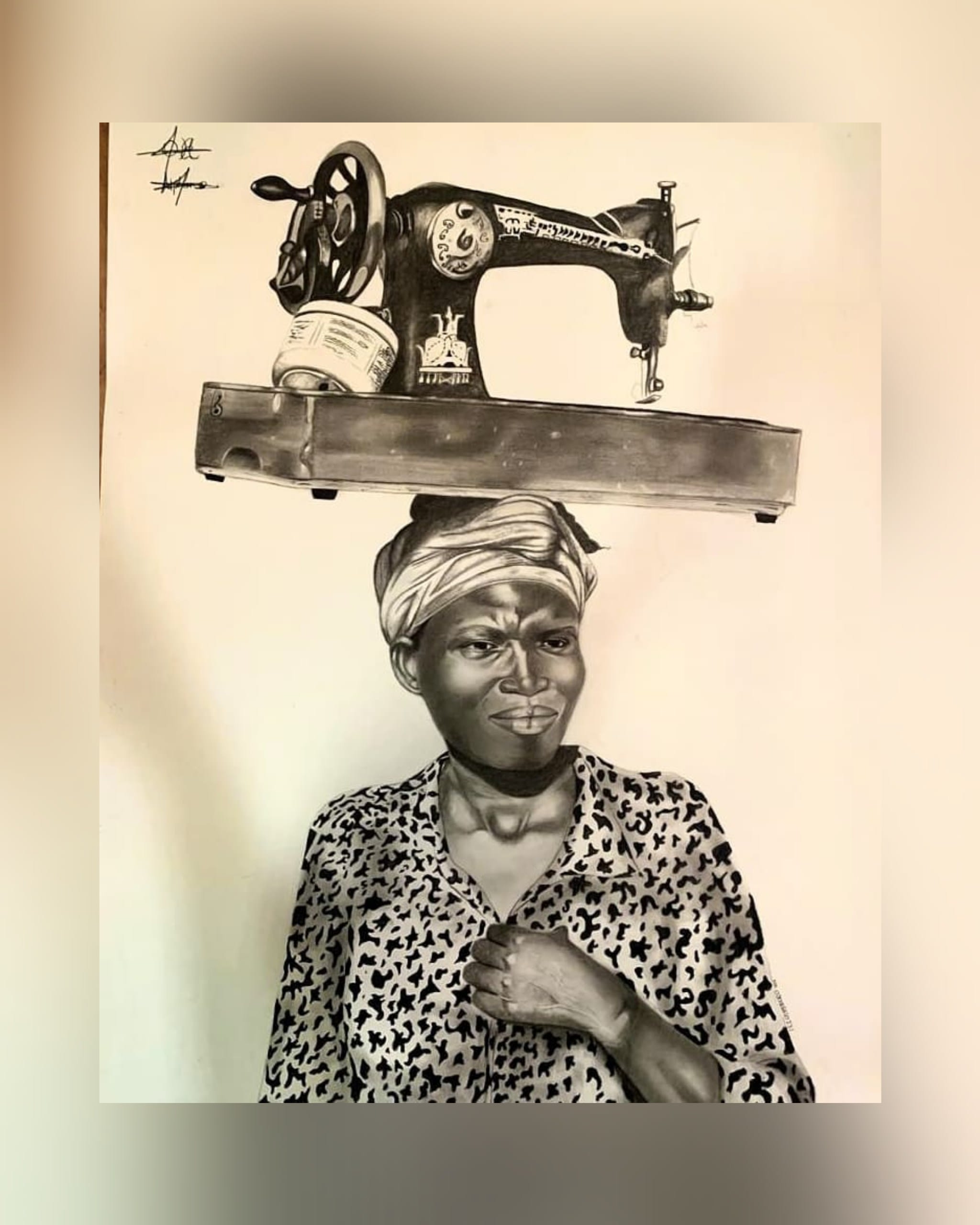 The inspiration behind “CARRYING HER CRAFT” lies in the intersection of labor, tradition, and empowerment. The piece is a tribute to the strength of women who bear the weight of their communities, not only through physical labor but through the emotional fortitude required to carry their dreams and responsibilities. It celebrates the quiet yet profound impact of women in shaping their families, communities, and cultures. The sewing machine is not just a tool—it’s a symbol of creation, sustenance, and the power of determination in the face of daily struggles.