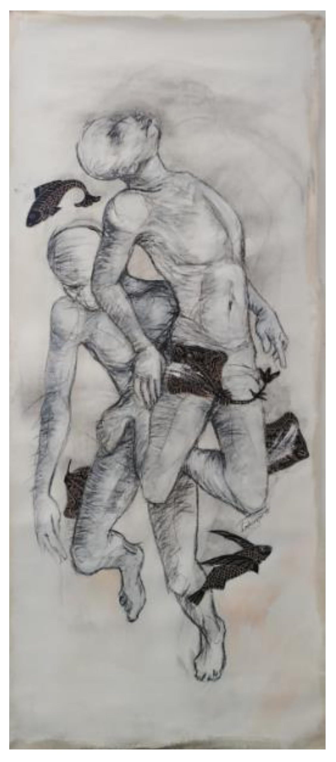Materials: Acrylic, Canvas, Charcoal, Fabric